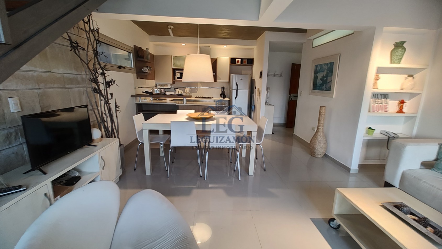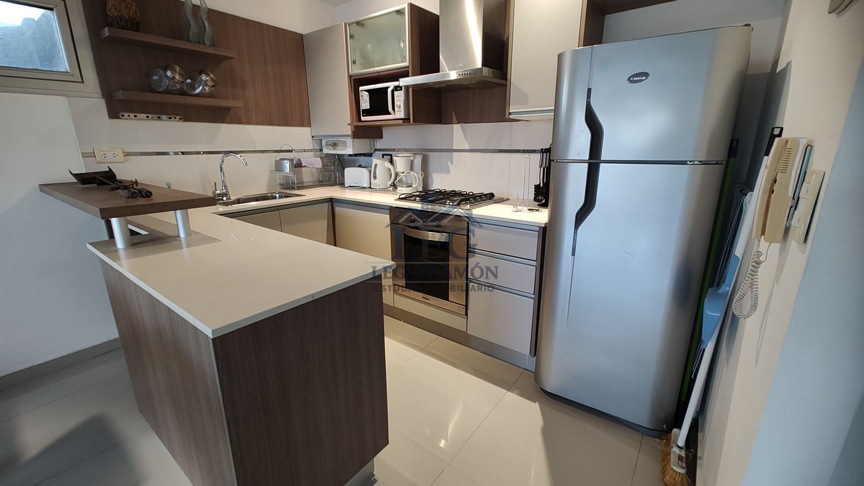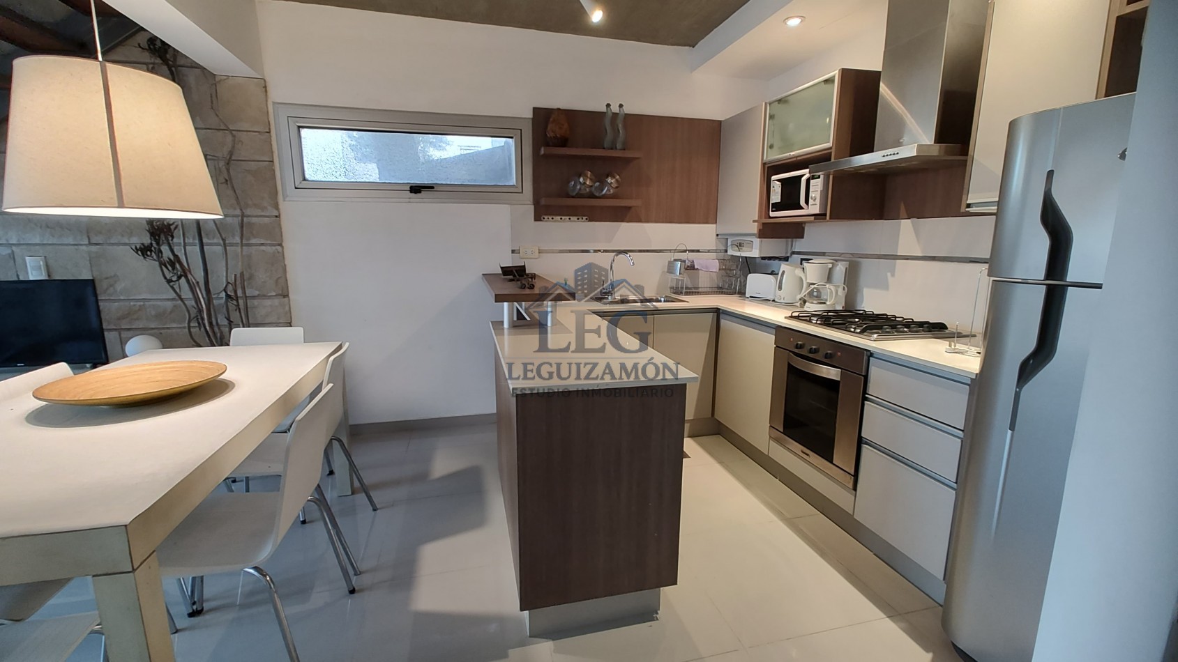 - Cocina integrada con barra desayunadora.